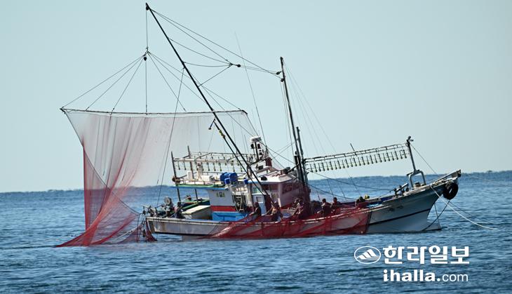 [한라일보] 20일 서귀포시 대정읍 동일리 앞바다에서 어민들이 자리잡이 조업을 하고 있다. 강희만기자
