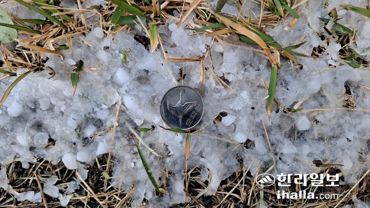 제주기상청 관계자는 "강한 한기를 동반한 저기압이 남하해 동반한 저기압이 남하해 대기 상층과 하층간 기온차로 대기 불안정이 발생해 우박이 형성됐다"고 설명했다.