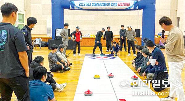 이날 행사에는 성산읍 환경미화원, 청소차운전원, 환경대체인력 등 환경업무 종사자들이 참석, 족구와, 컬링경기, 신발양궁, 협동바운스, 대형 윷놀이 등 다채로운 경기를 즐기며 단합을 도모했다.