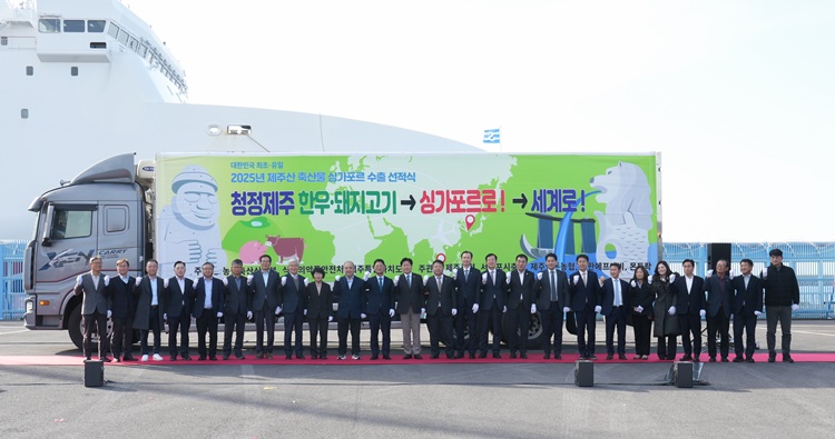 제주특별자치도는 1일 제주항에서 제주산 한우·돼지고기의 첫 싱가포르 수출을 기념하는 선적식을 개최한 가운데 추진 성과를 공유하고 유공자에게 표창장을 수여했다.