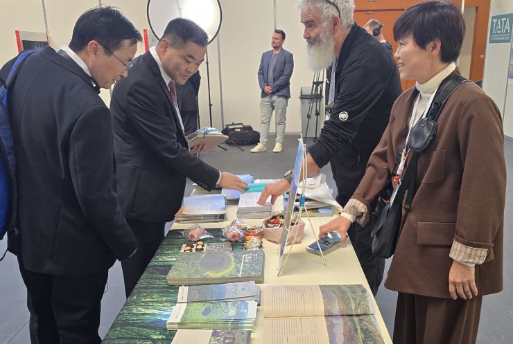 서귀포시협약인증습지도시등지역관리위원회가 헝가리 타타에서 열린 '제4차 람사르습지도시 시장단 회의'에서 홍보물을 전시해 서귀포시의 자연환경을 알리고 있다. 서귀포시 제공
