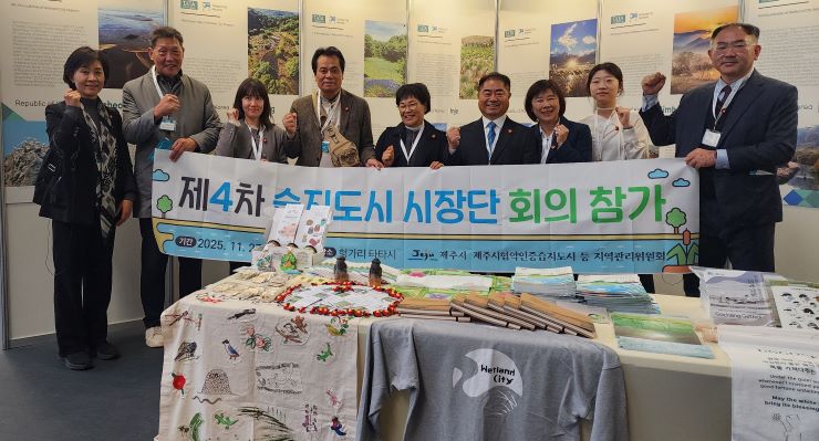 헝가리 타타에서 열린 '제4차 람사르습지도시 시장단 회의'에 참석한 제주시협약인증습지도시등지역관리위원회 대표단. 제주시협약인증습지도시등지역관리위원회제공