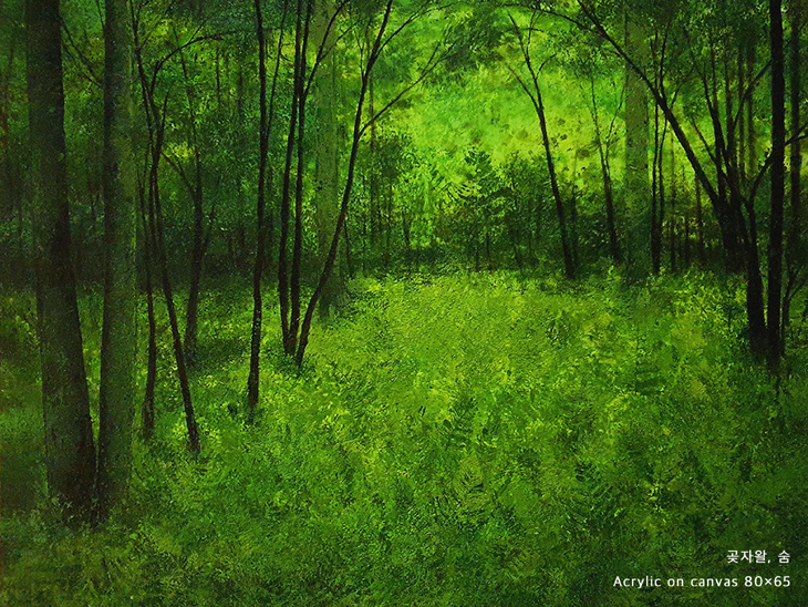 이번 전시는 그리메 소속 11명의 작가가 제주 자연을 주제로 그려낸 회화 작품 20점을 선보인다. 작가마다 각자의 시선으로 곶자왈 숲길, 동백꽃 등 제주의 자연 경관을 캔버스에 다채롭게 담아냈다.