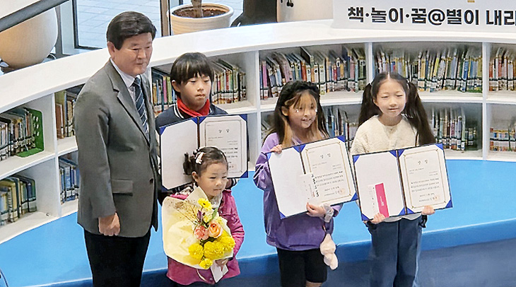 제4회 제주도서관 독서공모전 시상식이 지난달 29일 별이 내리는 숲 1층 책 놀이터에서 열렸다.
