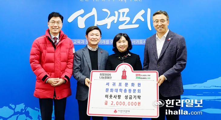 [한라일보] 서귀포문화대학 총동문회(회장 고인자)는 지난 3일 어려운 이웃을 돕기 위해 십시일반으로 모은 성금 200만원을 제주사회복지공동모금회를 통해 기탁했다.