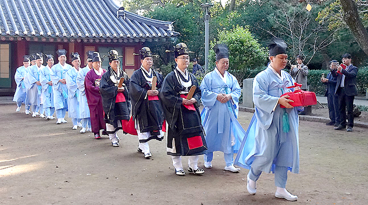초헌관에 진명기 도행정부지사, 아헌관에 정태근 대한적십자사 제주도지사 회장, 종헌관에 강승민 제주시교육지원청 교육장, 집례 박요찬의 창홀에 의해 봉행됐다.