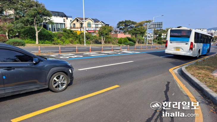 이와 함께 도는 제주공항 인근 해태동산(명신마을)에서 오라오거리로 이어지는 구간에서의 버스전용차로 위반 사례가 급증함에 따라 일부 구간(차선)에 대해 진입 차량이 빠져나올 수 있도록 조정했다. 서에서 동으로 진행하는 내리막길 150m가량을 기존 이중 파란 실선에서 한개는 실선으로 변경하며 버스전용차로인 1차로로 잘못 진입한 차량이 일반차량이 주행할 수 있는 2차로로 빠져나올 수 있도록 했다.