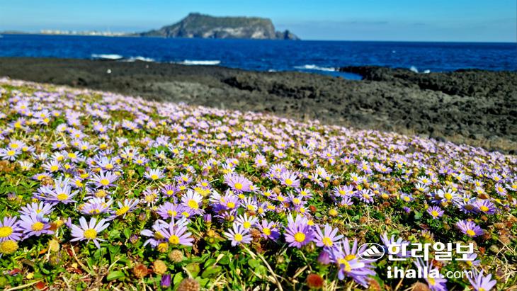 섭지코지는 주말 관광 나온 인파로 장관을 이루었다. 색이 붉은 스코리아(화산송이)들이 엉겨 붙은 용암분출에 대해, 준비해온 교구재를 보여주며 쉽게 설명했다. 용암이 덜 식은 상태에서 떨어지는 과정, 여러 번의 과정을 통해 분출된 분화구의 모습, 분출순서에 따른 선후관계 등, 설명은 절정에 절정을 거듭했다. 섭지코지의 핫 플레이스는 역시 풍화와 침식을 거쳐 단단한 부분만 남은 암경(용암의 중심통로)의 모습이다. 그 모습을 배경으로, 바다 속 사라진 분화구를 원형을 그리며 설명했다. 지구과학적인 이야기가 거듭 될수록 참가자들이 질문이 이어졌다. 섭지코지의 지질을 들은 후 주변 시설물에 대해 안내가 이어졌다. 일본군이 설치한 고사포진지, 우도등대와 혼동되어 설치된 방두포등대, 제주도에서 원형의 그대로 남아 있는 협자연대 등이다. 멀리 보이던 일출봉이 시야에 들어 왔다. 그 앞을 해국과 산국 그리고 갯쑥부쟁이와 해당화 등 키 작은 들꽃들이 펼쳐졌다. 누구랄 것 없이 포토 존을 찾아 셔터를 누른다. 참가자중 더러는 사진에 꽤 조예가 깊은 분들도 있었다. 간식을 꺼내어 먹으며 한참을 들꽃 향기에 취해 보았다. 스쳐 지나가는 깊은 일렁임은 한 소절의 시가 되어 남겨졌다.