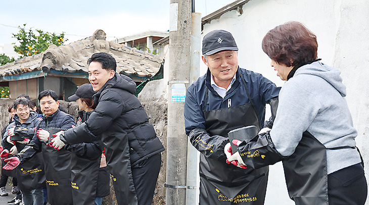 제주시는 지난 12일 (사)따뜻한 한반도 사랑의 연탄나눔운동본부(이사장 이동섭)로부터 연탄 5000장(500만원 상당)을 전달받고 지역 내 저소득 가구에 연탄을 전달하는 현장 봉사활동을 펼쳤다.