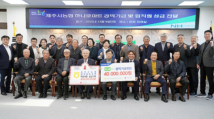 제주시농협(조합장 고봉주)하나로마트는 최근 공익기금 4000만원과 임직원 성금 3300여 만원을 제주사회복지공동모금회(회장 강지언)에 기탁했다.