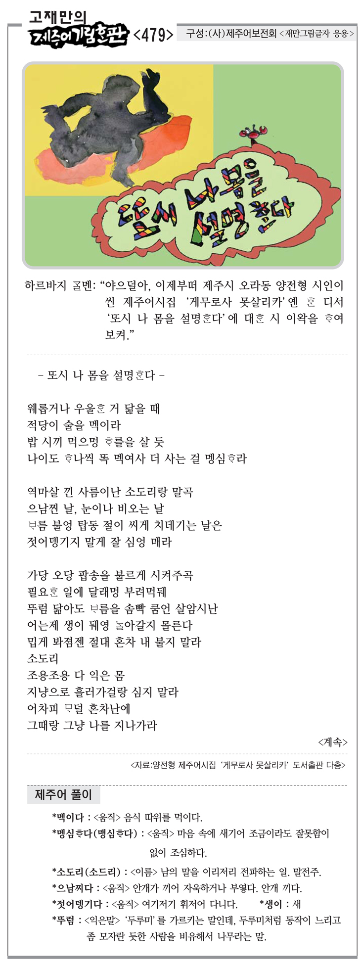 [고재만의 제주어기림혼판] 제주어 풀이(479)