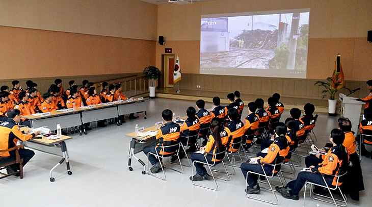 서귀포소방서(서장 고정배)는 17일 대회의실에서 소방공무원 60여 명이 참석한 가운데 지난 1일 발생한 토평동 자원순환시설 화재와 관련해 현장대응활동 검토회의를 개최했다.