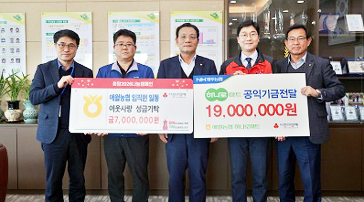 애월농협(조합장 김병수) 하나로마트는 최근 애월농협 조합장실에서 공익기금과 임직원 성금 등 총 2600만원을 제주사회복지공동모금회(회장 강지언)에 기탁했다.
