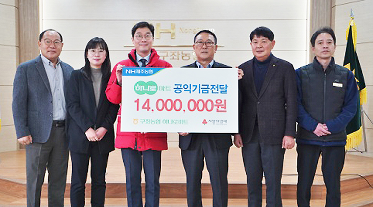 [한라일보] 구좌농협(조합장 윤민) 하나로마트는 최근 구좌농협 조합장실에서 하나로마트 공익기금 1400만원을 제주사회복지공동모금회(회장 강지언)에 기탁했다.