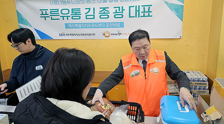 김종광 푸른유통 대표는 지난 16일 제주도사회복지협의회(회장 고승화)가 운영하는 제주시 사랑나눔푸드마켓·뱅크에서 '일일 명예점장'으로 위촉돼 나눔 실천에 동참했다.