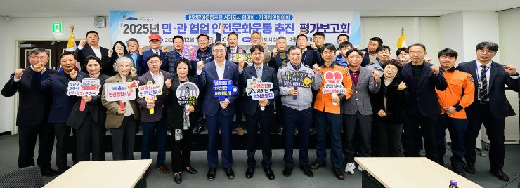 서귀포시는 지난 19일 별관 4층 회의실에서 교육지원청·경찰서·자치경찰단·소방서·해양경찰서 등 유관기관장과 안전문화운동추진 서귀포시협의회 위원이 참석한 가운데 '2025년도 민·관협업 안전문화운동 추진 평가보고회'를 개최했다. 서귀포시 제공