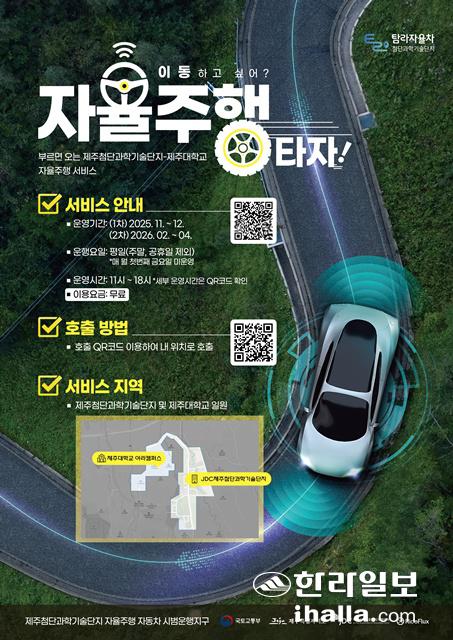 '2025 탐라자율차 첨단과학기술단지' 실증 서비스 안내 포스터. QR코드를 스캔해 전용 호출 웹페이지에 접속할 수 있다. 제주국제자유도시개발센터 제공