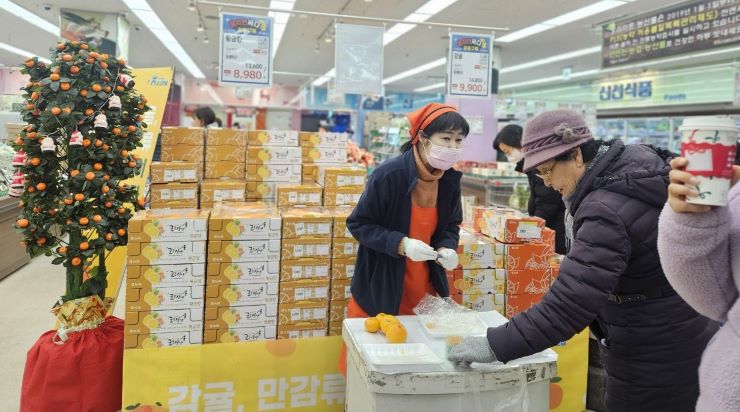 시는 12월 한 달간 서울·경기·충청·전라·경상권 등 전국 26개 하나로마트에서 진행 중인 '감귤 직거래 릴레이 페스타'를 통해 총 80t·2억6000만원의 판매실적을 올렸다고 22일 밝혔다.