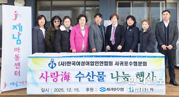 [한라일보] 서귀포수산업협동조합(조합장 김미자)과 사단법인 한국여성어업인연합회 서귀포수협분회는 지난 15일 제남아동센터에 약 500만원 상당의 수산물을 후원했다.