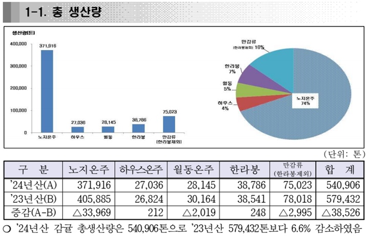 2024년 감귤 생산현황. 제주자치도 홈페이지 캡처