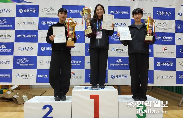 여자 고등부 도장유품자 부문은 하지은(한라태권도5관)·김지우(파란태권도)가 각 조별 우승을 차지했고 시범단유품자 부문은 현지연(한라태권도2관)이 초대 우승을 차지했다. 이와함께 3인조 단체전 고등부에서는 한라태권도5관 박예진·김유민·한아연 조가 정상에 올랐다.