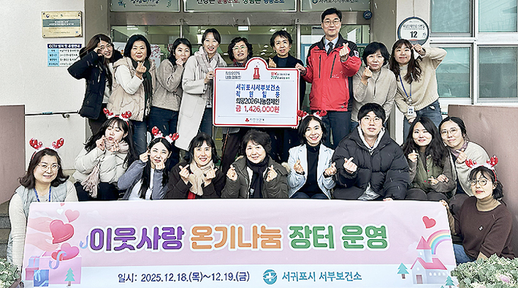 서귀포시 서부보건소는 '이웃사랑 온기나눔 장터' 행사 수익금 전액(142만6000원)을 지난 26일 제주사회복지공동모금회에 전달했다.