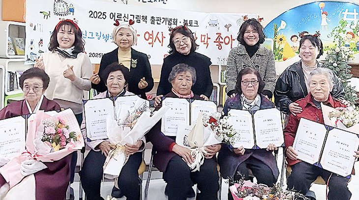 이번 행사는 2025년 '나 역사 닦으난 막 좋다'를 주제로 운영된 제주어르신그림책학교의 한 해를 마무리하는 자리로, 어르신 창작그림책 5종 발간을 기념한 졸업식과 북토크, 원화 전시가 함께 열렸다.