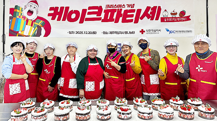 제주국제자유도시개발센터(JDC)의 도민지원사업 일환으로 대한적십자사 제주특별자치도지사(회장 정태근)는 지난 20일 제주적십자사 빵나눔터에서 크리스마스 기념 케이크를 제작하는 봉사활동을 실시했다.