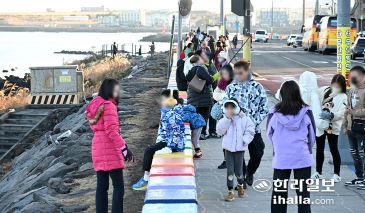 제주 겨울 즐기는 관광객들