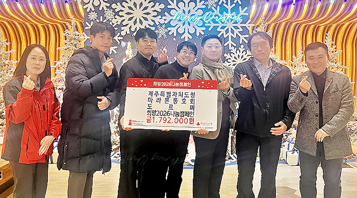 제주특별자치도청 마라톤동호회 도르미(회장 신철삼)는 지난 29일 사회복지공동모금회 제주지회(사랑의열매)에 성금 179만2000원을 기탁하며 17년째 '달린 만큼 나눈다'는 약속을 지켰다.