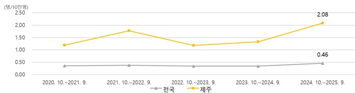 중증열성혈소판감소증후군(SFTS) 발생 추이. 제주도 제공