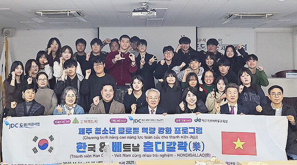 [한라일보] (사)해피트리(이사장 송형록)는 최근 서귀포시자기주도학습지원센터(꿈마루실)에서 제주청소년들의 제주문화의 자긍심과 글로벌 역량강화를 위한 'JDC 도민지원사업 한&베 혼디갈락(樂)' 발대식을 개최했다.