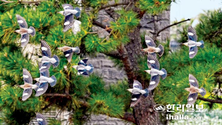 [한라일보] 5일 제주시 한경면 고산리 들녘에서 붉은부리찌르레기들이 군무를 펼치고 있다. 강희만기자