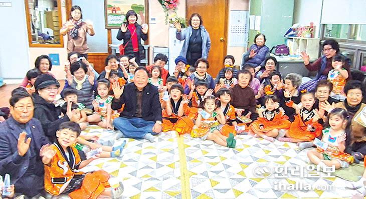 대한노인회 제주시지회(회장 문준식)가 운영한 '2025 경로당 세대통합 프로그램 지원사업'에 참여한 내친구어린이집(원장 임순여) 원아들은 최근 일도2동경로당(회장 강창근)을 방문했다.