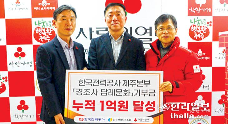 제주사회복지공동모금회(회장 강지언)는 최근 한국전력공사 제주본부(본부장 박득원·노조위원장 고현석)의 누적 기부금이 1억원을 돌파했다고 밝혔다.