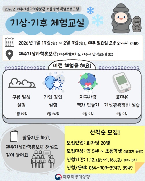 제주기상청 '기상·기후 체험교실' 연다