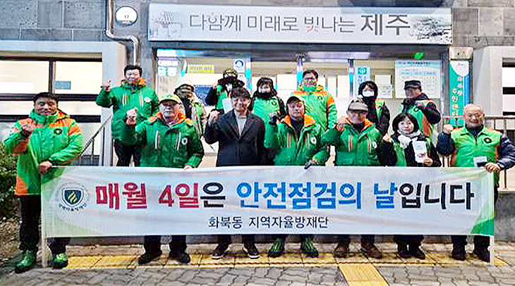 제주시 화북동 지역자율방재단(방재단장 박재덕)은 지난 5일 안전점검의 날을 맞아 방재단원 10여 명이 참여한 가운데 안전문화운동 캠페인을 벌였다.