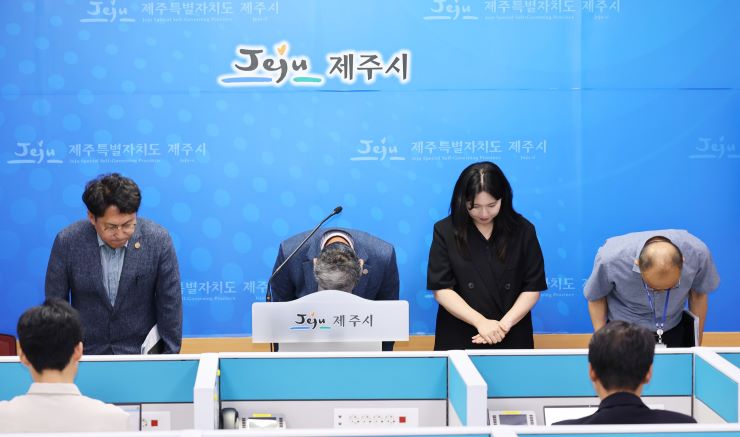 김완근 제주시장이 지난해 7월 제주시청 소속 공무직 직원의 종량제봉투 판매대금 횡령과 관련해 공식 사과하고 있다. 제주시 제공