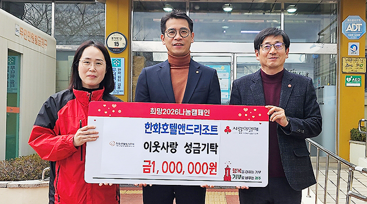 한화리조트 제주(총지배인 이승용)는 최근 제주사회복지공동모금회(회장 강지언)에 이웃사랑 성금 100만원을 기탁했다.
