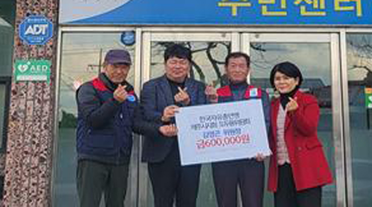 한국자유총연맹 제주시지회 도두동위원회 김영곤 위원장은 지난 5일 제주시 도두동주민센터에 60만원을 기탁했다. 기탁금은 지역 내 저소득 어르신을 위해 쓰일 예정이다. 김 위원장은 "어려운 형편에 놓인 어르신들께 작은 보탬이 됐으면 한다"고 했다.