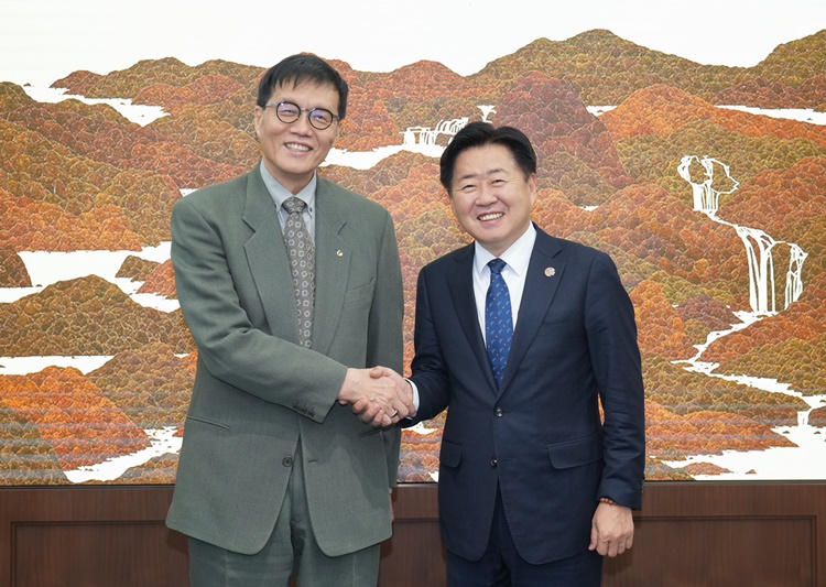 이창용 한국은행 총재와 면담한 오영훈 제주도지사. 제주도 제공