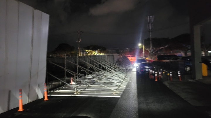 지난 10일 밤 10시 17분쯤 제주시 연동에서는 공사장 펜스가 쓰러져 안전조치됐다. 제주소방안전본부 제공