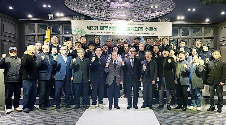 (사)제주생명의숲(이사장 고윤권)은 지난 8일 이세문 원우회장을 비롯해 30여 명이 참석한 가운데 파라다이스회관 연회장에서 제주산촌전문교육과정 3기 수료식을 열었다.