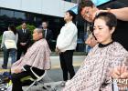 13일 오전 제주대학교 산학협력관 앞에서는 미래융합대학 소속 교수와 학생, 동문 등이 참여한 삭발식이 진행됐다. 이날 실버케어복지학과 동문회장 김상돈 씨와 재학생 유수경 씨가 삭발에 나섰다.