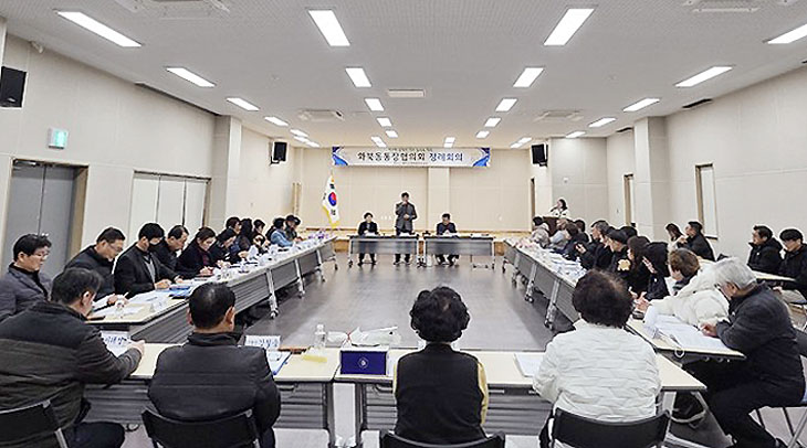 제주시 화북동(동장 김기석) 통장협의회(회장 이동훈)는 최근 주민센터 2층 대회의실에서 통장 34명이 참석한 가운데 정례회의를 개최했다.