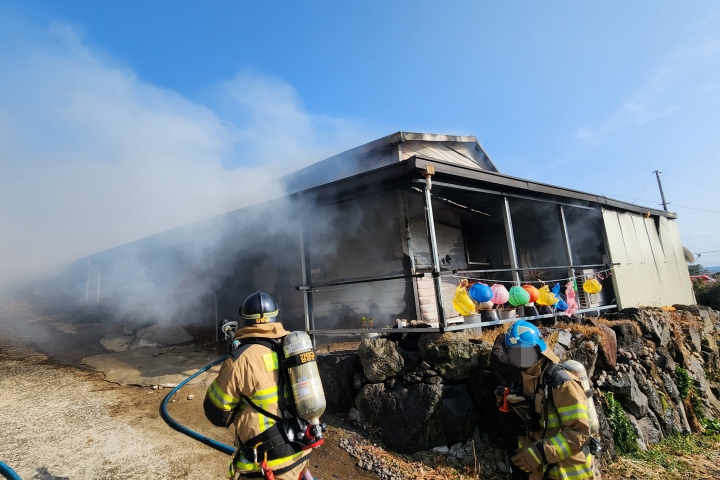 14일 오후 1시 30분쯤 서귀포시 남원읍 신례리의 한 사찰에서 화재가 발생했다. 제주소방안전본부 제공