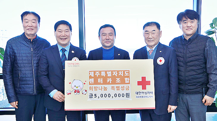 제주도렌터카조합(이사장 강동훈)은 지역사회 취약계층 지원을 위해 대한적십자사제주도지사(회장 정태근)에 희망나눔 특별성금 500만원을 기탁했다.