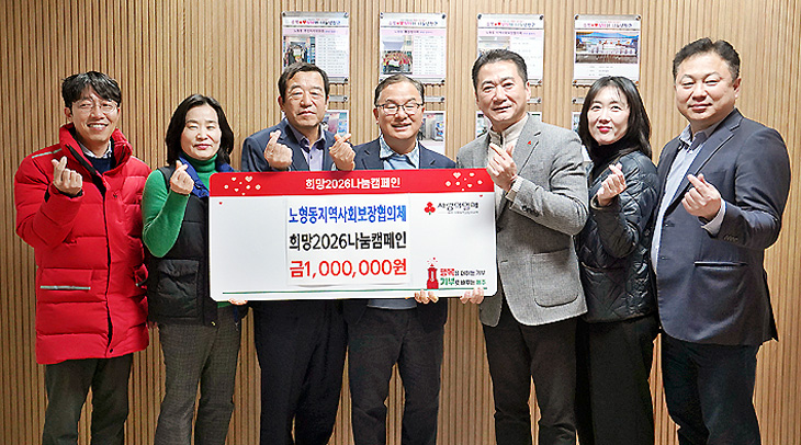 노형동지역사회보장협의체(공동위원장 김병희·고광수)는 최근 제주사회복지공동모금회(회장 강지언)에 희망2026나눔캠페인 이웃사랑 성금 100만원을 기탁했다.