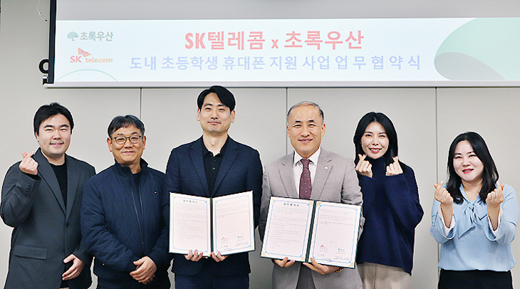 [한라일보] 초록우산 제주지역본부(본부장 김희석)는 지난 12일 SK텔레콤 서부마케팅담당(담당 하명복)과 제주지역 취약계층 초등학생을 위한 휴대폰 지원사업 추진을 위한 업무협약을 체결했다.