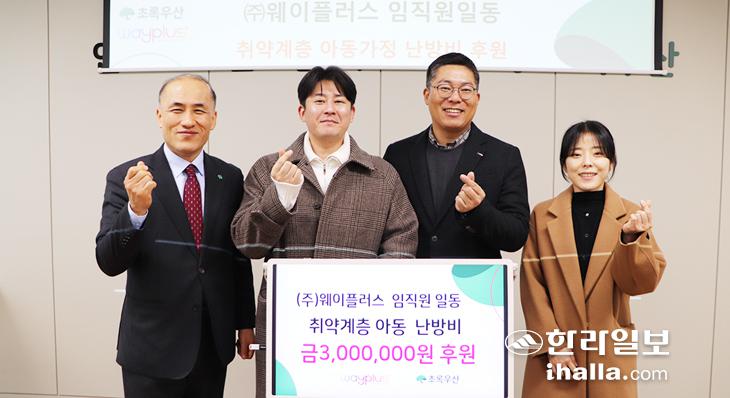 초록우산 제주지역본부(본부장 김희석)는 지난 7일 교육 행사 대행 서비스 전문 기업인 (주)웨이플러스(대표이사 강봉조)로부터 아동 후원금 300만원을 전달받았다.